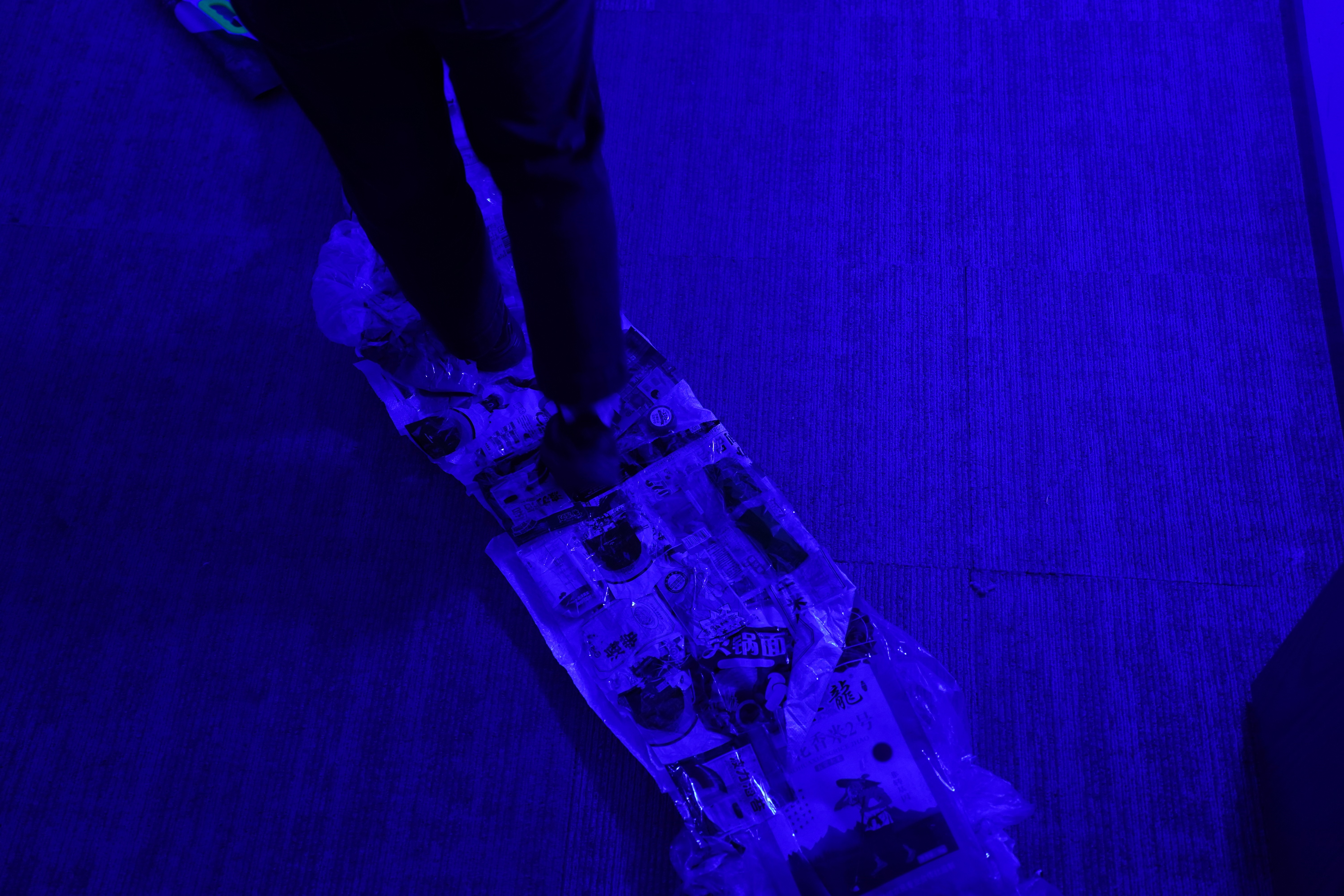 An immersive experience made of community waste, inviting viewers to feel the tension of an ocean filled with plastic.